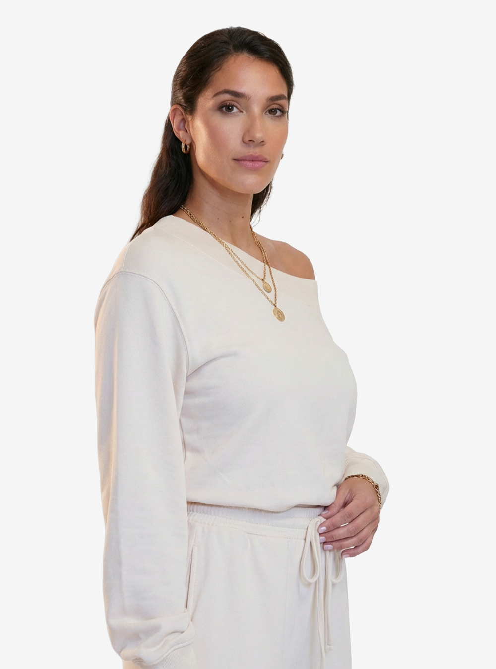 - Long sleeves and a relaxed neckline that can be styled off the shoulder for an easy, feminine touch.