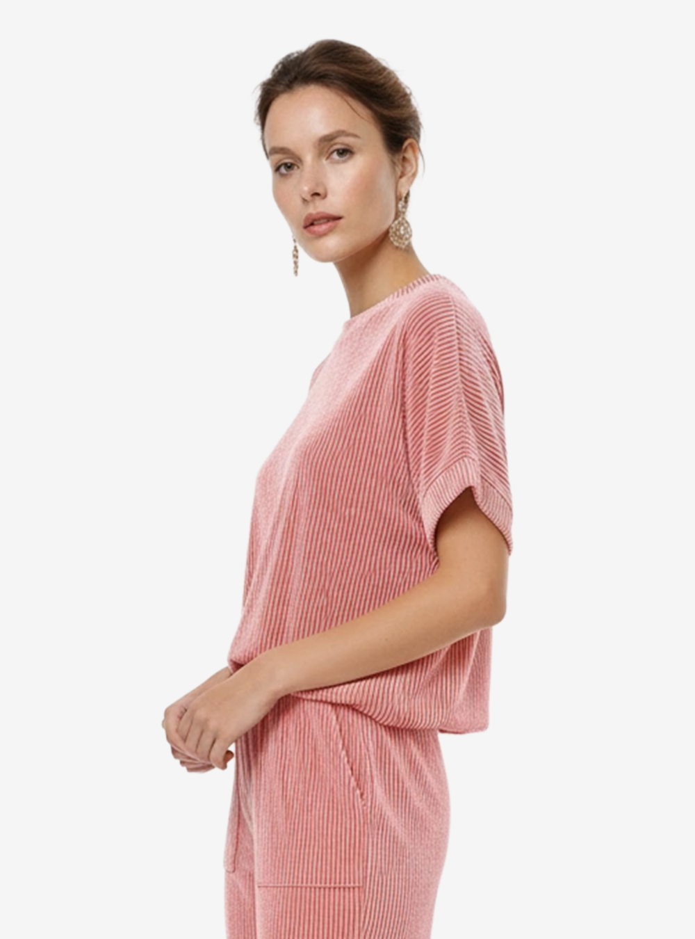 Effortless style meets all-day comfort. This ribbed short sleeve top + straight leg pants combo is soft, stretchy, light weight and ready for anything—lounge, travel, or casual outings.