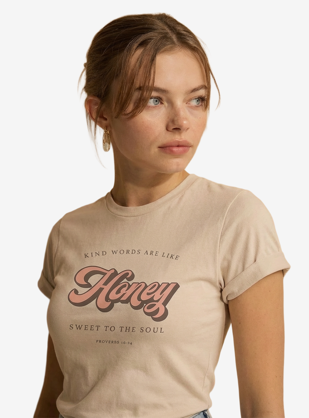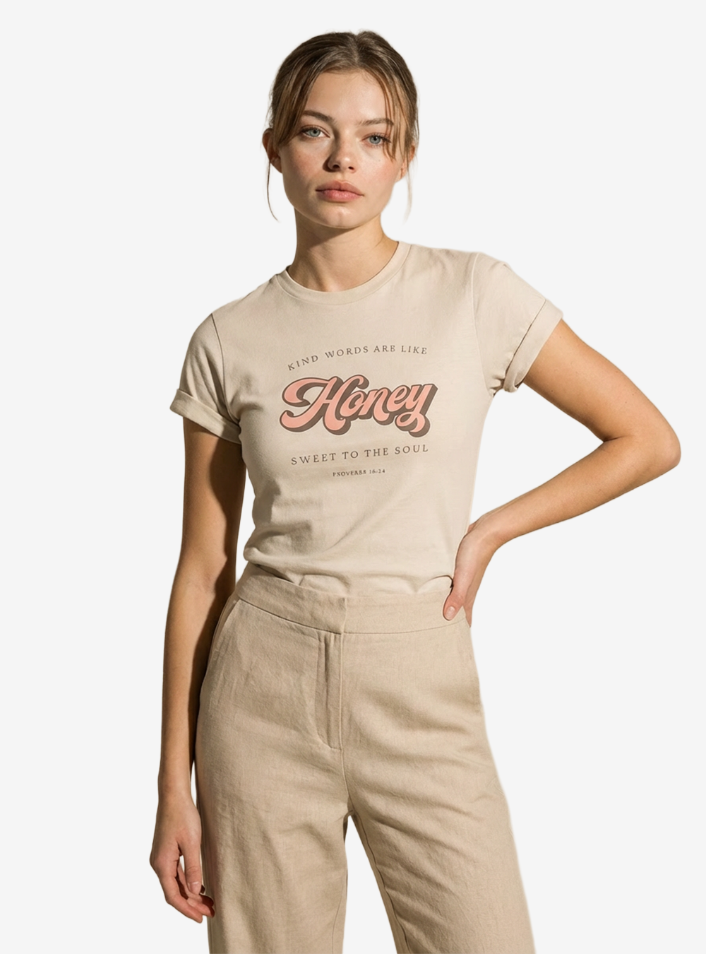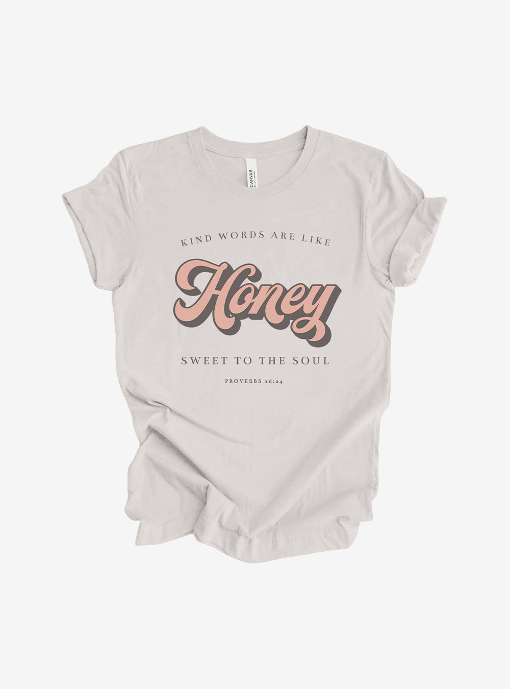 Soft, simple, and full of meaning, the Honey Tee is a daily reminder to speak life and kindness. Made from 100% Bella + Canvas cotton, itâs the perfect go-to tee for layering or wearing on its own.